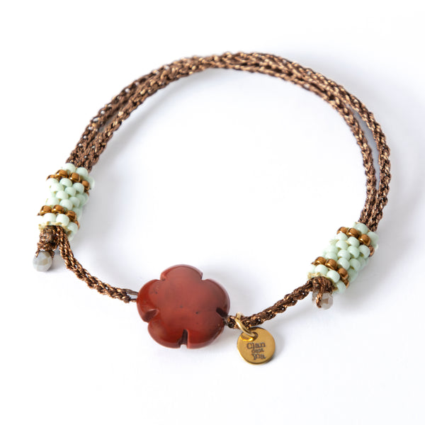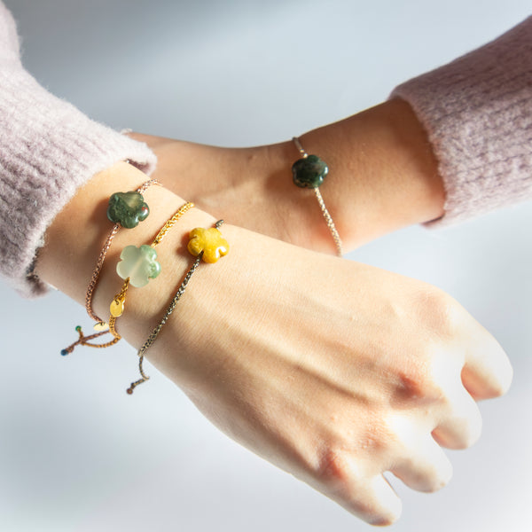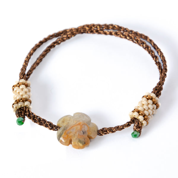 Bracciale con pietra in giada, filo in lurex e pietre miyuki.