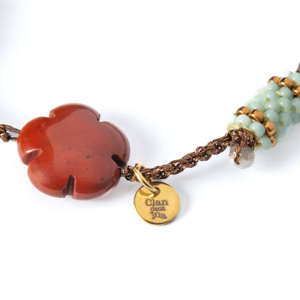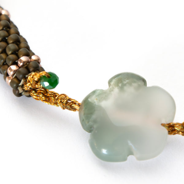 Pietra in giada grigio-verde e perline marroni - Esaurito