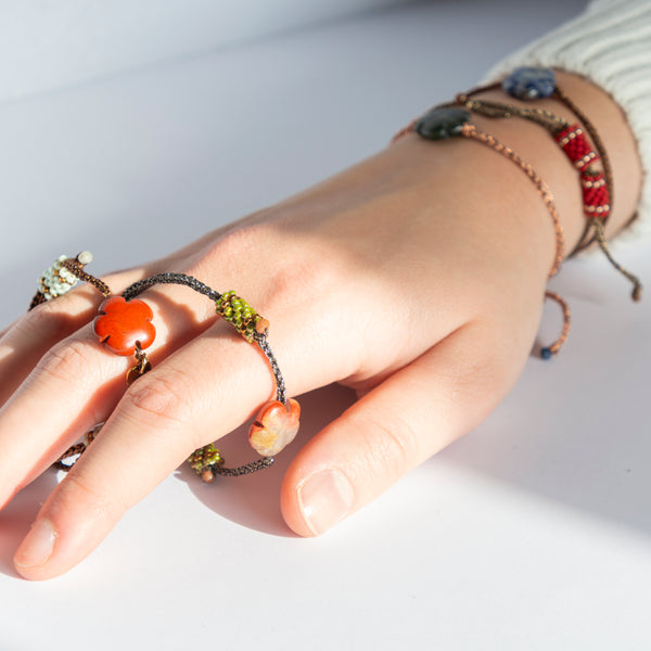 Pietra in giada rossa e perline azzurre - €18,00 EUR